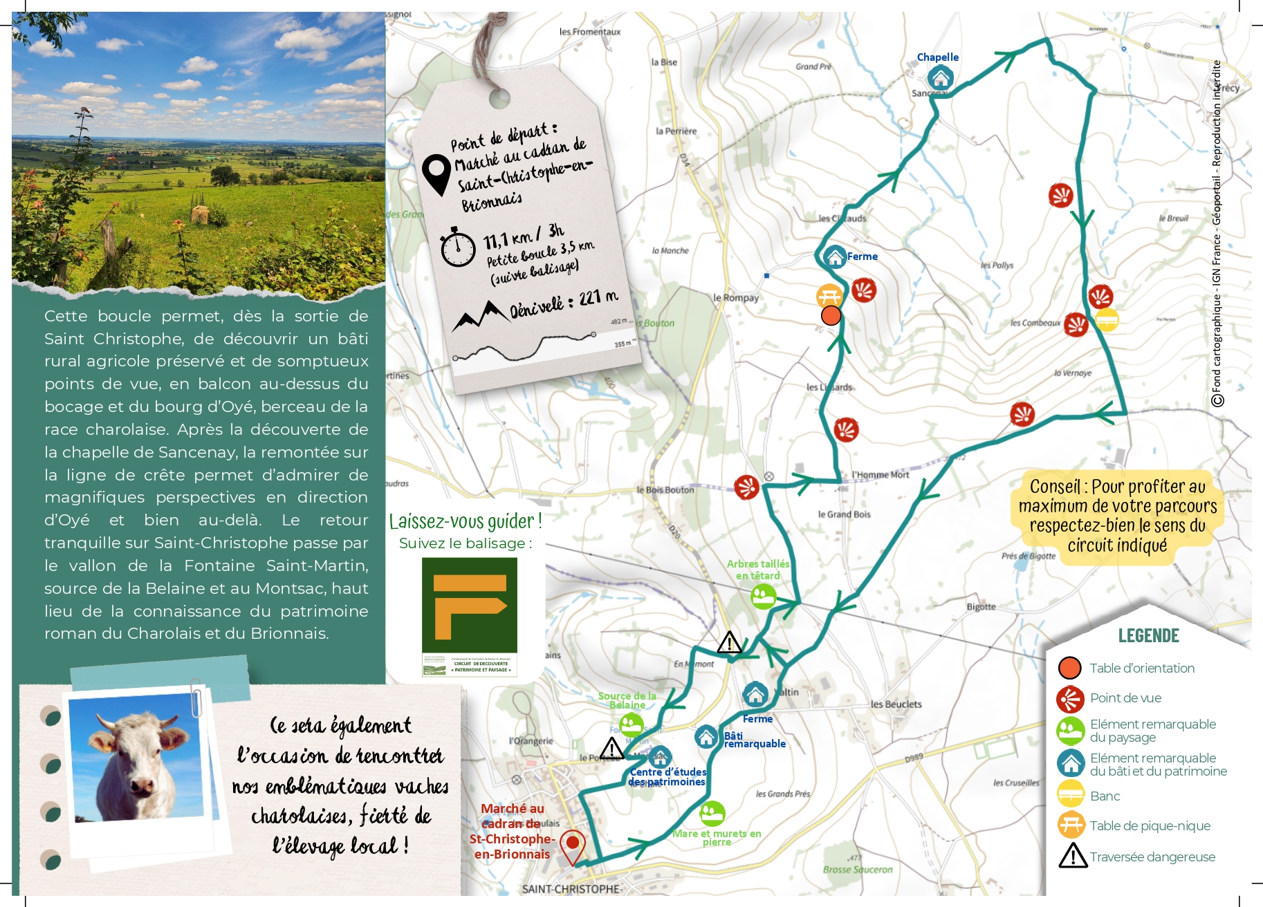 Saint Christophe en Brionnais est le point de départ de 4 randonnées pédestres.